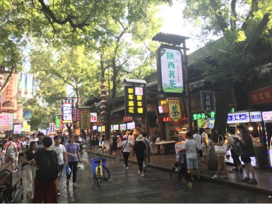鐘鼓樓廣場在鐘樓和鼓樓之間,被稱為古城西安的“城市客廳”。回民街距今已有上千年歷史,是西安著名的美食文化街區(qū),街道兩邊都是古色古香的仿古建筑,各種知名的西安小吃應有盡有。在各種各樣的特色美食之后,我們也結束了第一天的行程。